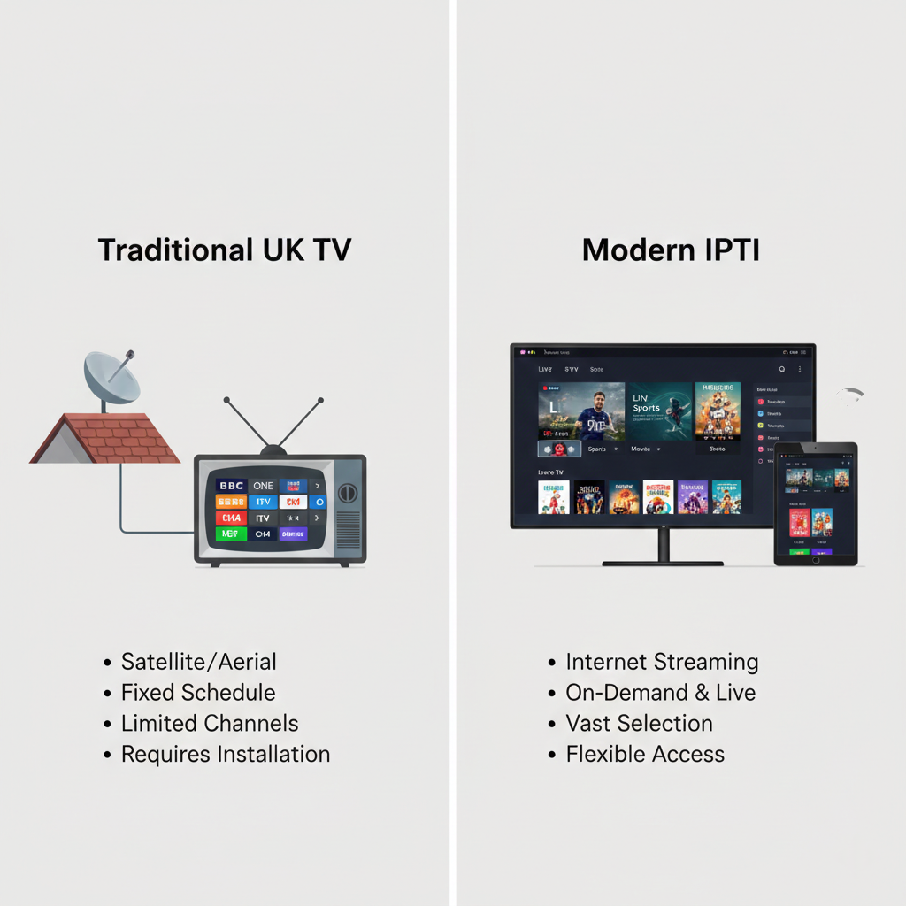 IPTV UK vs traditional TV and streaming apps