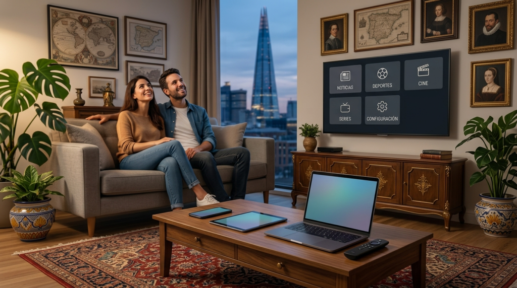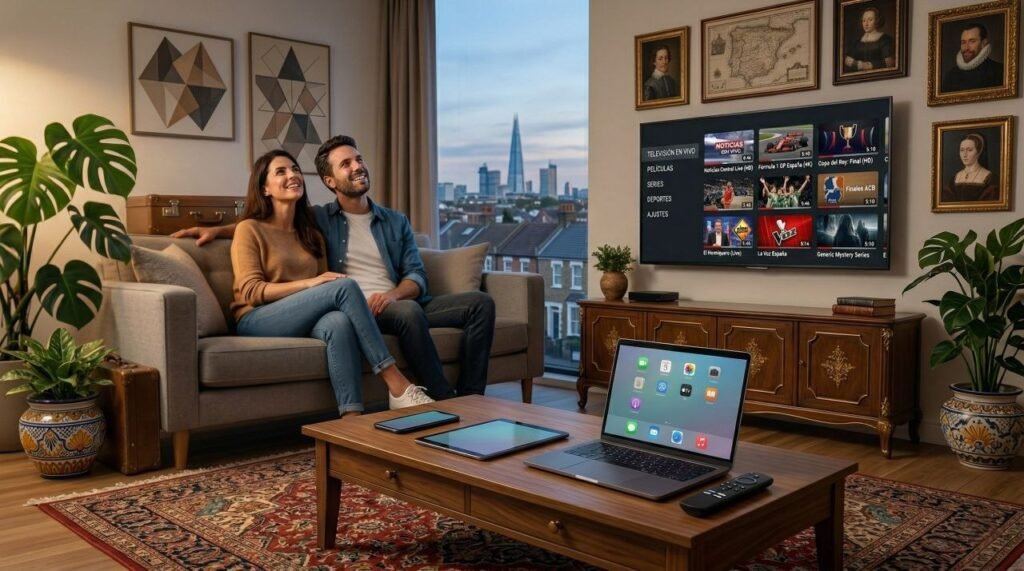 One of the main reasons IPTV in the UK has grown rapidly is its compatibility with everyday devices. A typical setup might involve an Amazon Firestick plugged into a TV, running an IPTV player app where users log in with their subscription. Smart TVs (Samsung, LG, Android TV), mobile devices, and even web browsers offer similar experiences, making it easy to switch between screens.