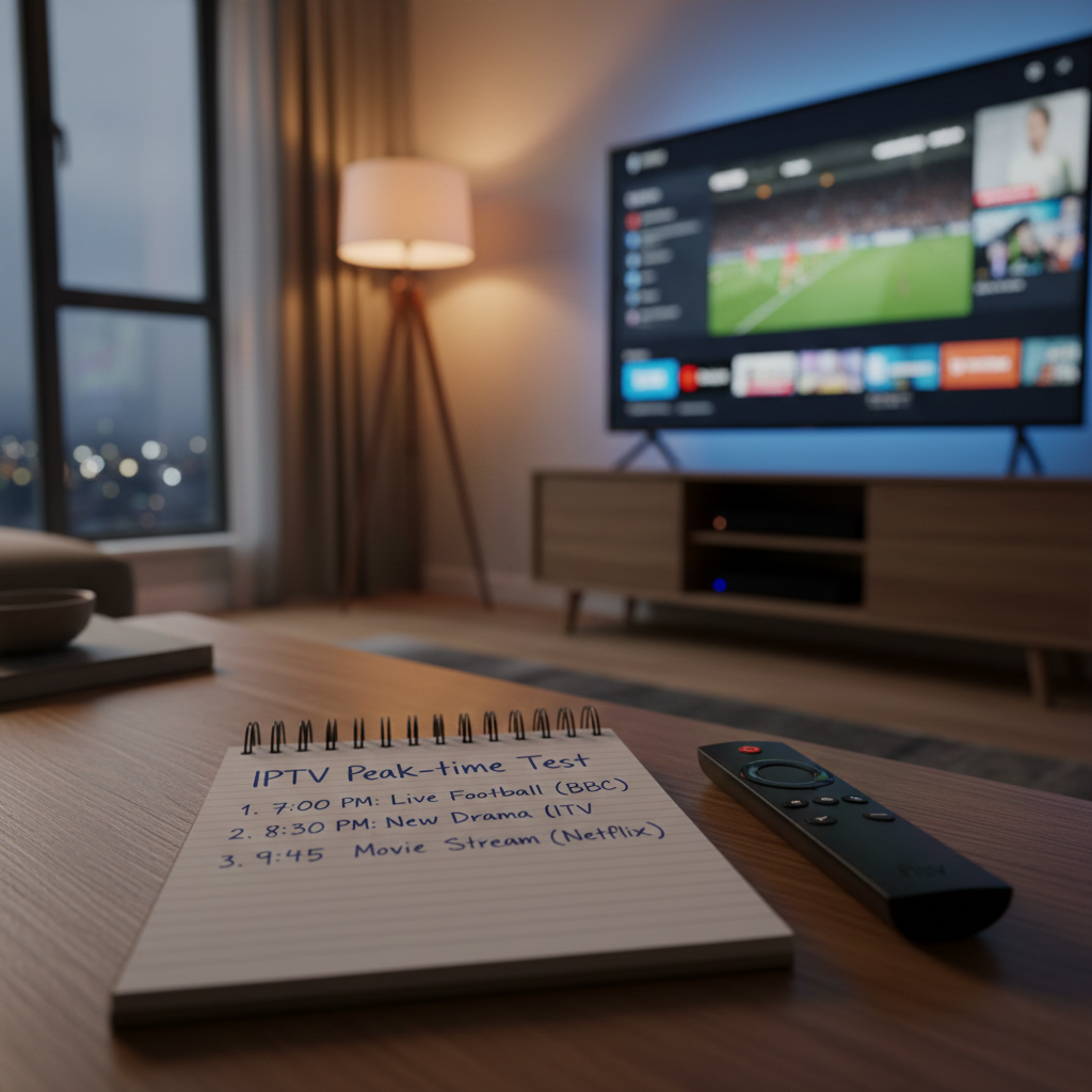 The 3pm vs 9pm test is the simplest way to expose the truth. Pick the same live channel (ideally sports or a popular UK entertainment channel) and watch it for 10–15 minutes around 3pm. Then repeat the exact test around 9pm using the same device and the same internet connection. If the stream is stable in the afternoon but freezes at night, the cause is rarely your IPTV app settings. It usually points to either provider server overload or ISP traffic shaping during peak hours. This test is far more reliable than speed tests because it measures real streaming performance, not theoretical bandwidth.